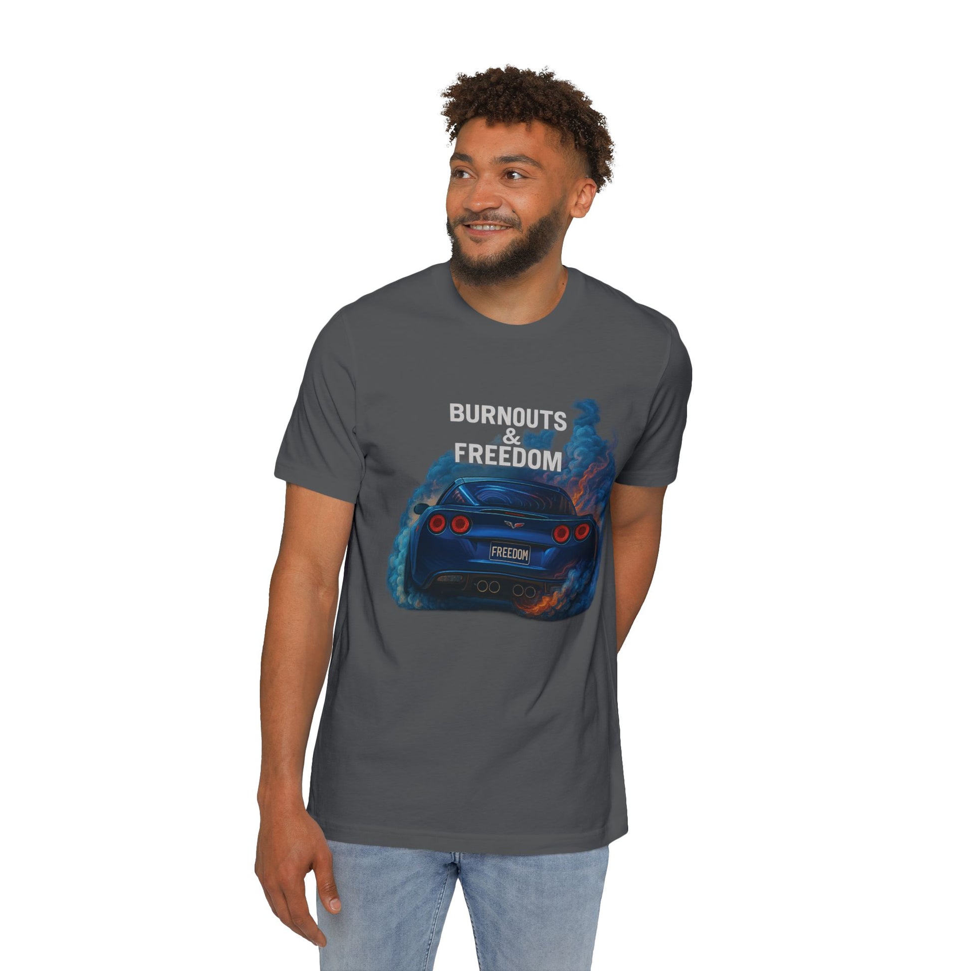 Freedom Burnouts T-Shirt, Muscle Car Tee, USA-Made Shirt, Automotive Gift, Unisex Graphic Tee